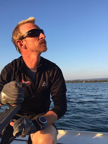 T’as où les voiles ? Optimist à 5 ans et la régate à 6, suivi de l’Europe , du laser, du 470, du cata et du Moth à foil / Régaté trois saisons en Dod 24.5 de 2003 à 2006 / Deuxième au championnat suisse de surprise en 2007 / Régate depuis 2010 sur le Blue Note, puis Blue Note 2 / Fait quelques régates en modulo 105 / Permis lac voile et moteur + permis mer.